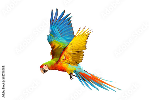 © Passakorn, Fototapeta premium Colorful flying Shamlet macaw isolated on transparent background png file