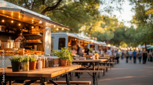Naklejka premium Colorful Food Trucks on a Lively Street