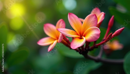 © สิริวุฒิ นาคโคตร, Fototapeta premium colorful frangipani flowers on a long thin stem, frangipani, tropical tree