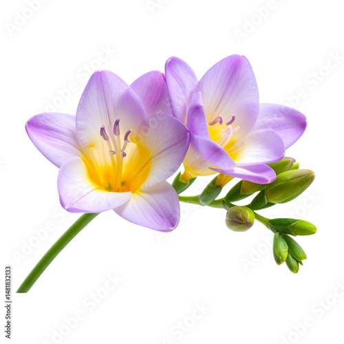 © Raju, Naklejka premium Colorful Freesia Bloom with Buds and Stem, Transparent Background"