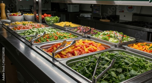 Fototapeta premium Colorful fresh salad bar with diverse vegetable options for healthy delicious meals