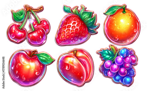 Fototapeta premium Colorful Fruit Illustrations with Bright Colors and Unique Shapes on Transparent Background