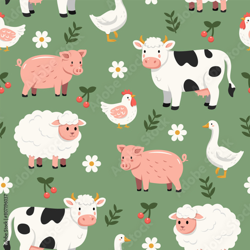 Fototapeta premium Colorful funny cute farm animals pattern
