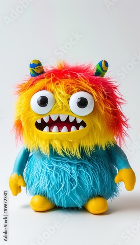 Fototapeta premium Colorful Furry Monster Toy With Big Eyes And Horns