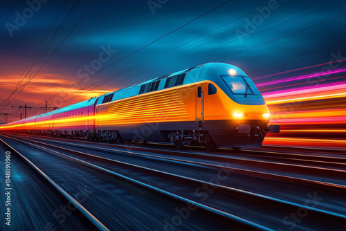 Naklejka premium colorful futuristic train in motion