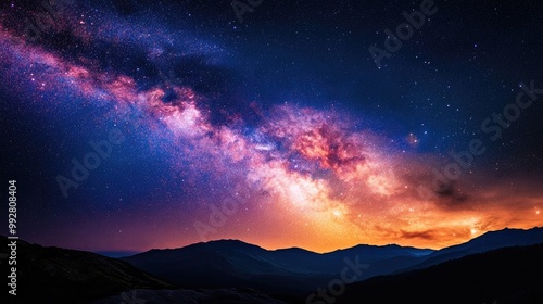 © Lilly, Fototapeta premium Colorful galaxy in the sky above hills
