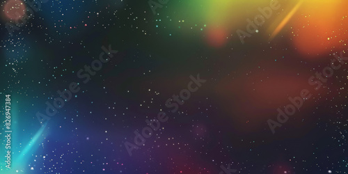 © Planetz, Naklejka premium Colorful galaxy with stars and nebulae, featuring a blend of vibrant hues and twinkling lights, creating a mesmerizing and dreamy cosmic scene.rainbow film texture overlay
