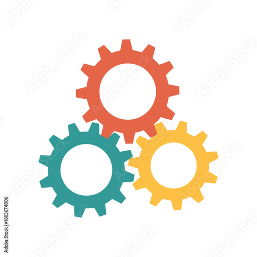Fototapeta premium Colorful Gear Mechanism Illustration Depicting Teamwork Interconnection and System Efficiency on a Clean White Background
