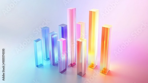 © วรรณภา มะโนศรี, Obraz premium Colorful Geometric Bars on Soft Gradient Background