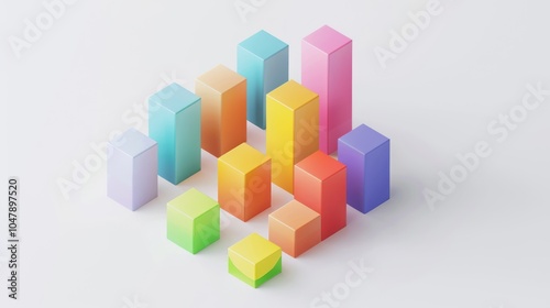© Imsuniyah, Fototapeta premium Colorful Geometric Blocks Arranged in a Pattern on a White Surface