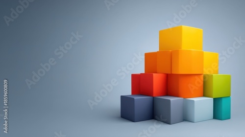 Obraz premium Colorful geometric blocks arranged in a pyramid shape on a smooth surface...
