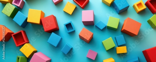 © Влада Яковенко, Obraz premium Colorful geometric blocks on blue background