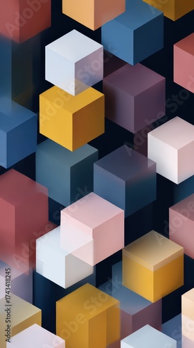 Fototapeta premium Colorful Geometric Cubes Arranged on Dark Background