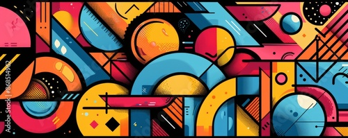 © peppastocker, Fototapeta premium Colorful geometric designs with bold outlines