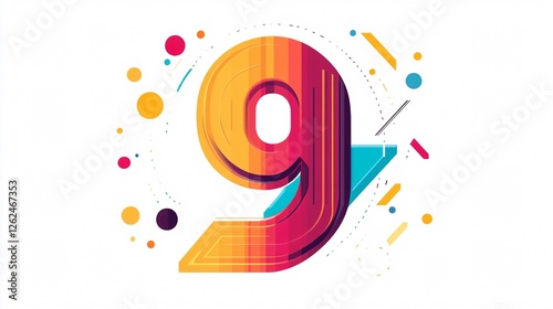 Obraz premium Colorful Geometric Flat Digit 9 Vector Isolated on White