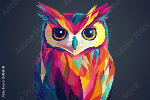 © aan, Fototapeta premium Colorful geometric owl portrait, dark background, digital art, website graphic