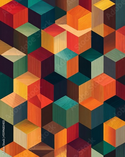 © InkCrafts, Obraz premium Colorful geometric pattern of 3D cubes creating a vibrant effect.