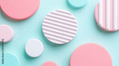 © Tackey, Fototapeta premium Colorful Geometric Shape Background with Circular Patterns in Soft Pastel Tones for Creative Projects