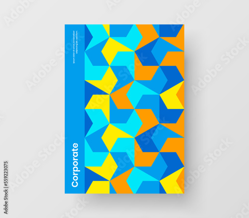 © pro, Fototapeta premium Colorful geometric shapes leaflet layout. Isolated cover A4 design vector template.