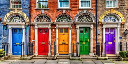 © Tanjina, Obraz premium Colorful Georgian doors Dublin architecture