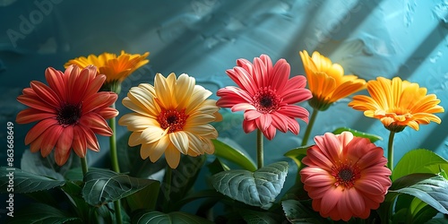 © Asad, Fototapeta premium Colorful gerbera flowers in the garden. Floral background