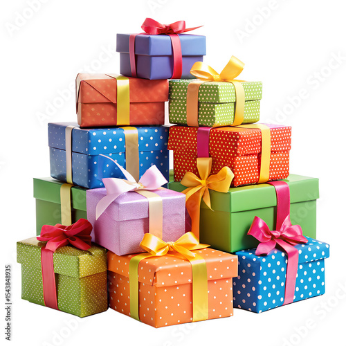 © SADNAN, Fototapeta premium Colorful Gift Box Stack On Transparent Background