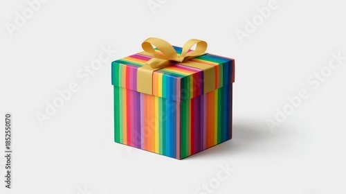 Obraz premium Colorful gift box with golden ribbon isolated on white background