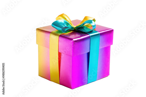 © Fahad, Obraz premium Colorful Gift Box with Rainbow Ribbon Perfect for Celebrations