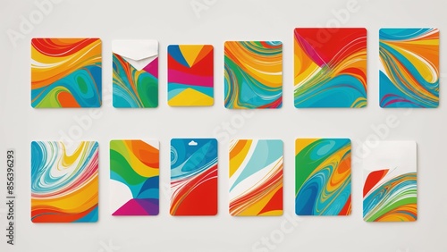 © alivealivea, Fototapeta premium Colorful gift cards with envelopes, abstract designs, isolated on white.