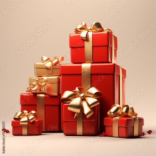© Abdul, Fototapeta premium Colorful giftboxes isolated on white background. 3D illustration.