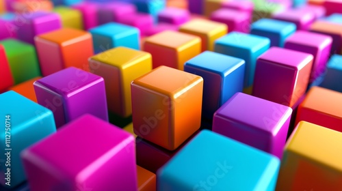 © Rstm, Obraz premium Colorful glossy blocks arranged in a repeating pattern.