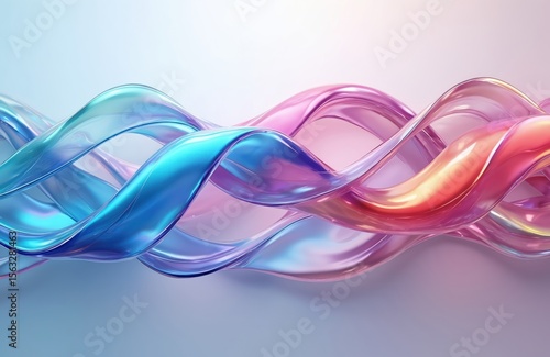 © Pete, Naklejka premium Colorful glossy glass ribbon with holographic curved wave design. Abstract element for banners backgrounds wallpapers. Modern digital 3d art, light, texture, space, bright geometric shape.