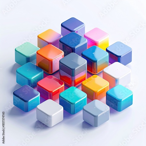 © Nasraa, Fototapeta premium Colorful, glossy, rounded-corner cubes arranged in a semi-symmetrical pattern