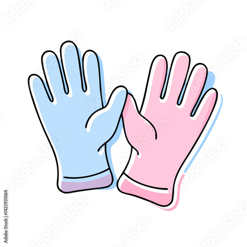 © VladaToday, Obraz premium Colorful gloves in pink and blue design for cleaning tasks
