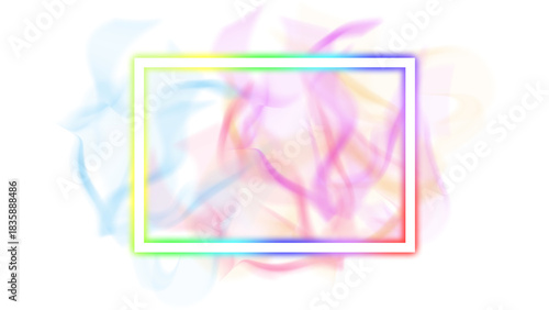 Fototapeta premium Colorful Glowing light square shaped border with colorful smokes in the back...