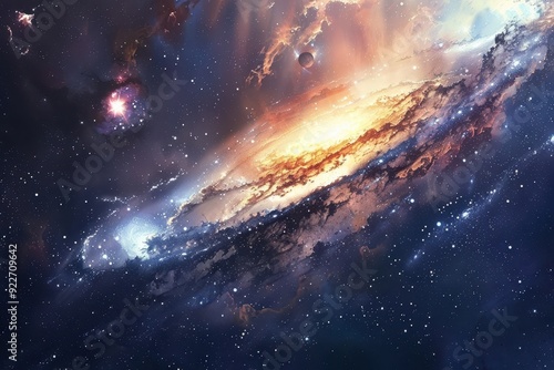 © emailkeee, Obraz premium Colorful Glowing Spiral Galaxy with Stars and Nebulae