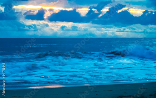Fototapeta premium Colorful golden sunset big wave and beach Puerto Escondido Mexico.