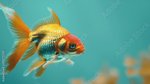 © k, Naklejka premium Colorful Goldfish on Aqua Background