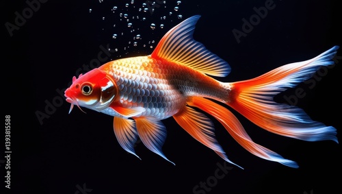 © Bankphotographer, Fototapeta premium Colorful Goldfish on Black Background with Flowing Fins.
