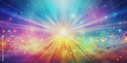 Naklejka premium Colorful gradient fantasy background with ethereal rays of light and whimsical elements, fantasy, gradient, background
