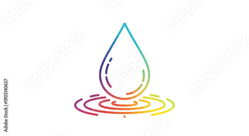 Fototapeta premium Colorful gradient water droplet with ripples symbolizing purity conservation...