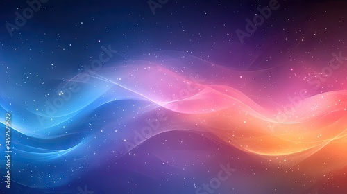 Obraz premium Colorful gradient waves intertwine. Starry effects. Blue, purple, orange hues...