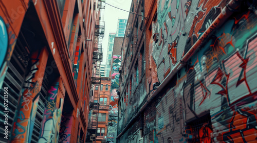 Fototapeta premium Colorful Graffiti Adorning Walls of Urban Alleyway