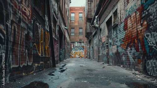 Fototapeta premium Colorful Graffiti Adorning Walls of Urban Alleyway