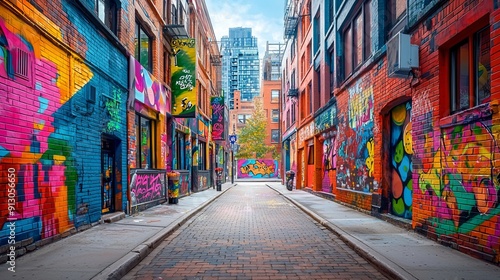 Fototapeta premium Colorful graffiti art in urban alleyway