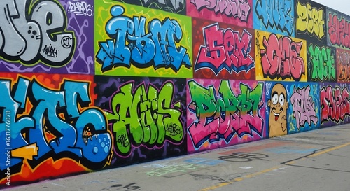 Obraz premium Colorful Graffiti Art Mural on a Concrete Wall with Diverse Styles