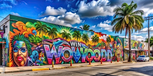 Obraz premium Colorful graffiti art on a street wall in the Wynwood area, Miami Florida,...