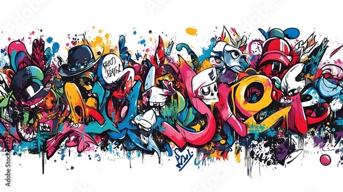 Naklejka premium Colorful Graffiti Art on Urban Wall with Abstract Graphic Designs