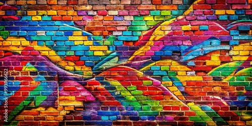 © Danicha, Fototapeta premium Colorful Graffiti Brick Wall Background for Urban Art and Street Culture Inspired Designs and Projects