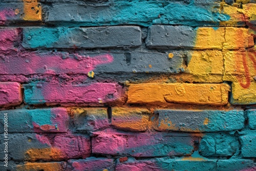 © Lyashko-Ai, Obraz premium Colorful Graffiti on Brick Wall